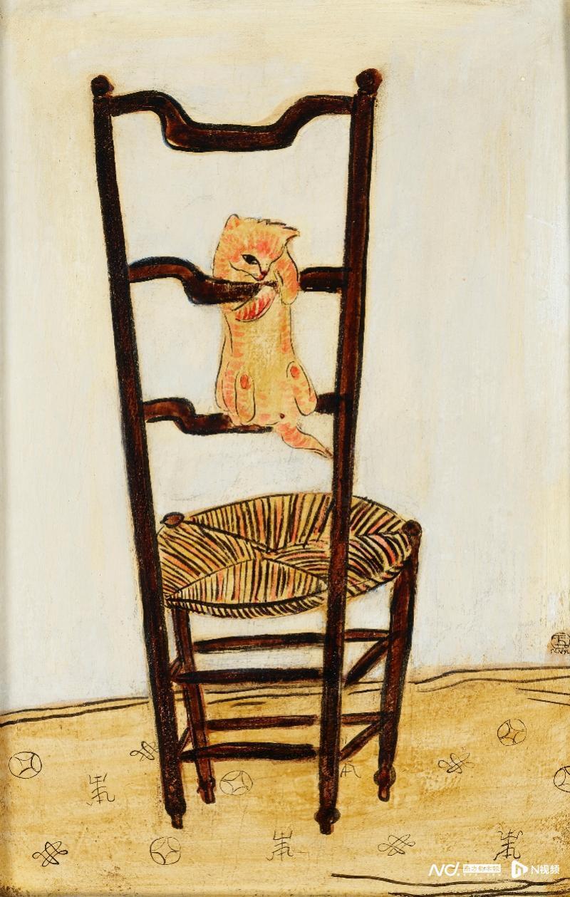 常玉 《在椅子上攀爬的帽;裸女(雙面畫)》正面:油彩纖維板原裝畫框背面:油彩紙本裱于纖維板畫芯:50.7×33.4公分畫框:51.1×34.7公分 1930年代作