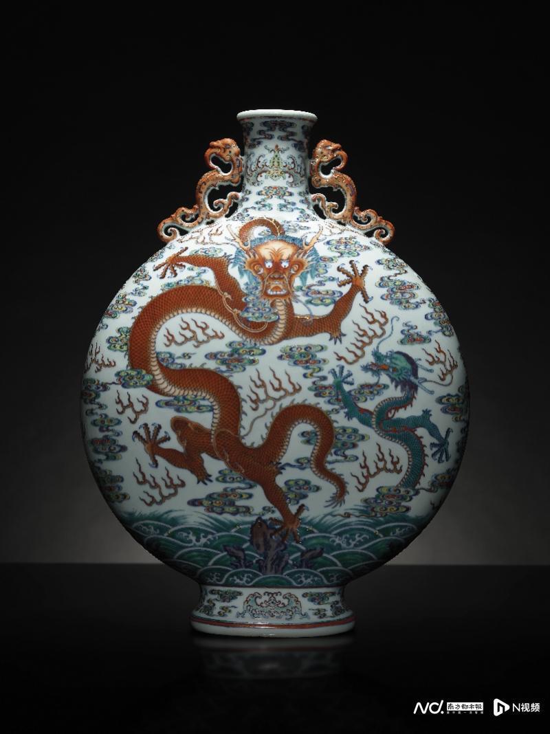 中國瓷器及工藝精品此次內(nèi)地巡展帶來乾隆主題現(xiàn)場專拍“絢彩斗妍─乾隆御瓷三珍”中珍稀非凡的乾隆御瓷精品,其中包括一件極為珍罕的清乾隆斗彩蒼龍教子圖夔龍耳抱月瓶,這尊臻美不凡的斗彩抱月瓶品相出眾,自 1995年香港佳士得拍賣以后,便未曾出現(xiàn)于流通領(lǐng)域,為中國古董的藏家心馳神往。