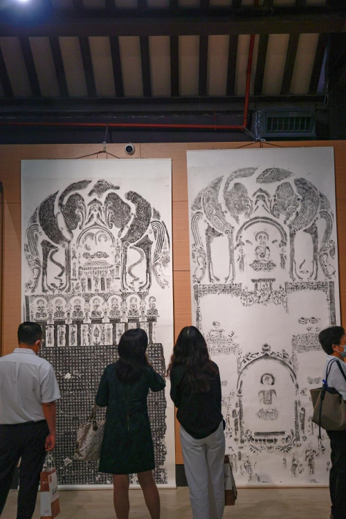 “如此精美的畫像與千百年來的漢字完美融合,讓我感到非常震撼?!背两谟^展中的陳女士告訴羊城晚報全媒體記者,在觀賞金石拓本時,她感受到了“如龍蟠霧,似風騰霄”的書法魅力及古人征服自然的毅力恒心,凝視著巨幅拓本,“仿佛把我?guī)Щ氐搅?000多年前的北齊?!?/p>