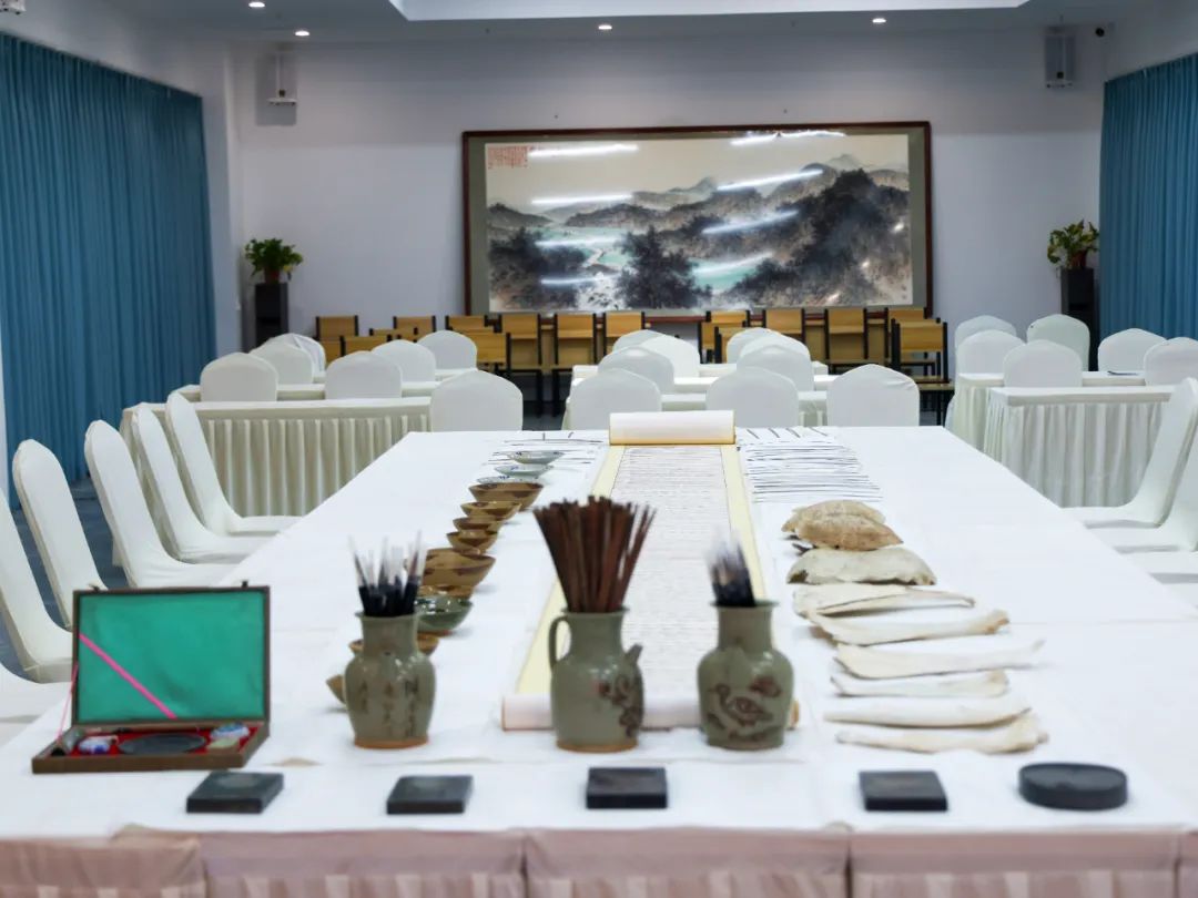 考慮到學(xué)生們來(lái)學(xué)習(xí)華文,老師們特別展示了館藏的“甲骨文”、骨刻文、秦簡(jiǎn)、硯臺(tái)以及筆墨等文物。在互動(dòng)環(huán)節(jié)中,留學(xué)生們親身體驗(yàn)了毛筆的使用,感受到了中華文化的魅力。
