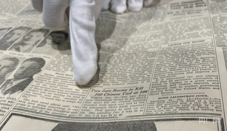 兩份美國報(bào)紙報(bào)道日軍“百人斬”暴行。其中,《芝加哥每日論壇》報(bào)道中說:“根據(jù)《東京日日新聞》今天的報(bào)道,兩名日本中尉比賽看誰能先殺死100名中國士兵,結(jié)果都?xì)⒘顺^100人,雙方打平殺了106人,他們又同意重新比賽殺到150人為止,12月6日是89比78,12月1日是56比26。”殺戮比賽讓人觸目驚心。江蘇省行政學(xué)院教授楊夏鳴表示,這些報(bào)紙報(bào)道了日軍侵華期間美國各媒體關(guān)于日軍在南京等地的暴行,以及西方世界的反應(yīng),具有重要的史料、文物和展陳價(jià)值。