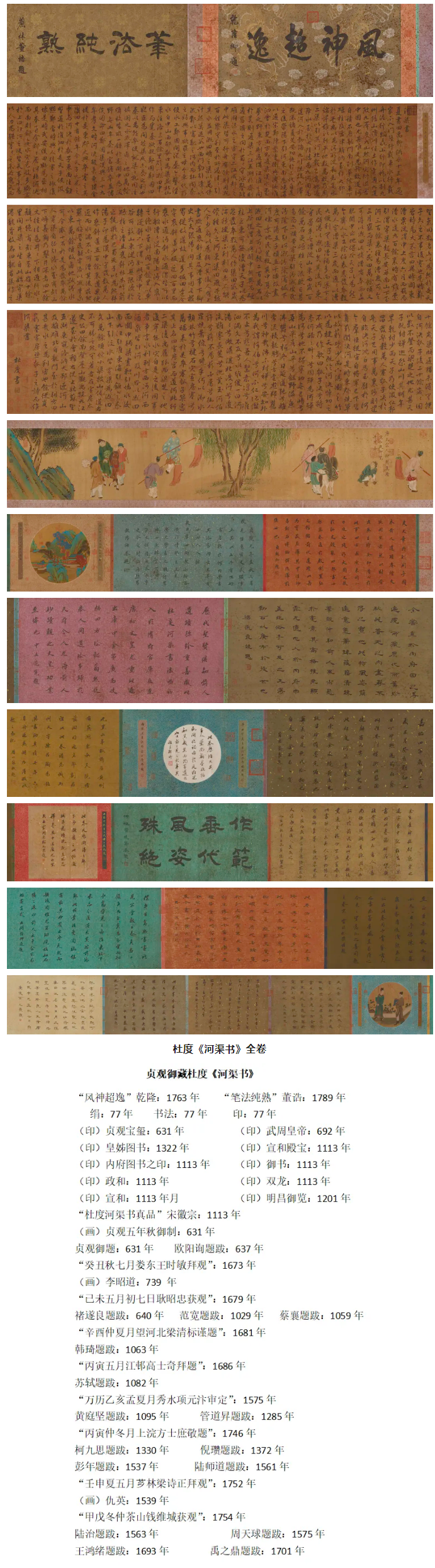 本館還收藏杜度另一幅行書西漢楊雄的《長(zhǎng)楊賦》,乾隆重裝時(shí)附入杜度的絹本人物畫長(zhǎng)卷。杜度是畫家,知之者甚少。