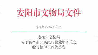 據(jù)安陽市文物局消息,該市將開展民間收藏甲骨信息收集整理工作。旨在統(tǒng)籌推進甲骨文保護利用工作,全面了解民間收藏甲骨資源情況。